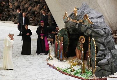 04/01/26. Bénie par le pape Léon XIV, la crèche « Nacimiento Gaudium » a remplacé la paille par 25 000 rubans, pour donner une voix aux enfants sauvés de l'avortement.